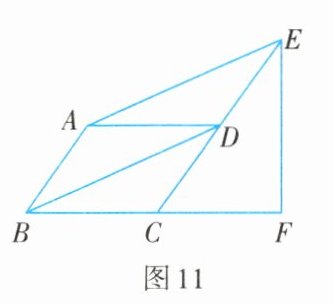 7. 如图11,在□ABCD中,∠ABC=60°,点E,F分别在CD和BC的延长线上,AE//BD,EF⊥BC,EF=√3,则AB=__________。