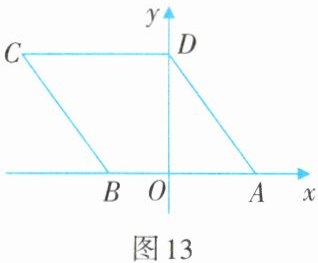 7. 如图13,若菱形$ABCD$的顶点$A$,$B$的坐标分别为$(3,0)$,$(-2,0)$,点$D$在$y$轴上,则点$C$的坐标是______.