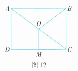 6. 如图12,点$O$是矩形$ABCD$的对角线$AC$的中点,点$M$是$CD$边的中点.若$AB = 8$,$OM = 3$,则线段$OB$的长为______.