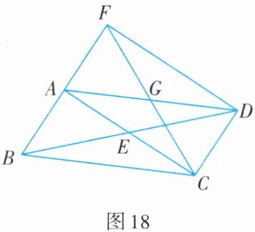 4. 如图18,在$\square ABCD$中,对角线$AC$与$BD$相交于点$E$,点$G$为$AD$的中点,连接$CG$,$CG$的延长线交$BA$的延长线于点$F$,连接$FD$.