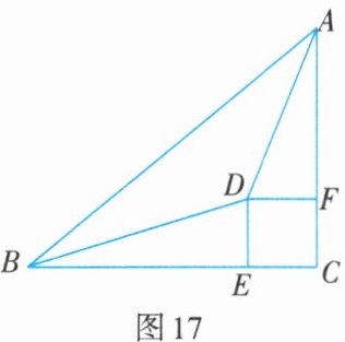 3. 如图17,在$\triangle ABC$中,$\angle C = 90^{\circ}$,$\angle BAC$,$\angle ABC$的平分线交于点$D$,$DE \perp BC$于点$E$,$DF \perp AC$于点$F$,四边形$CFDE$是正方形吗?请说明理由.