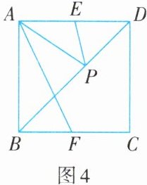 10. 如图4,在正方形ABCD中,点E,F分别为AD,BC的中点,点P为对角线BD上的一个动点,则下列线段的长等于AP+EP最小值的是( ).