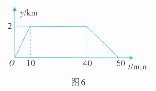 2. 星期天,小明上午8:00从家里出发,骑车到图书馆去借书,再骑车回到家. 他离家的距离y(单位:km)与时间t(单位:min)的关系如图6所示,则上午8:45小明离家的距离是______km.