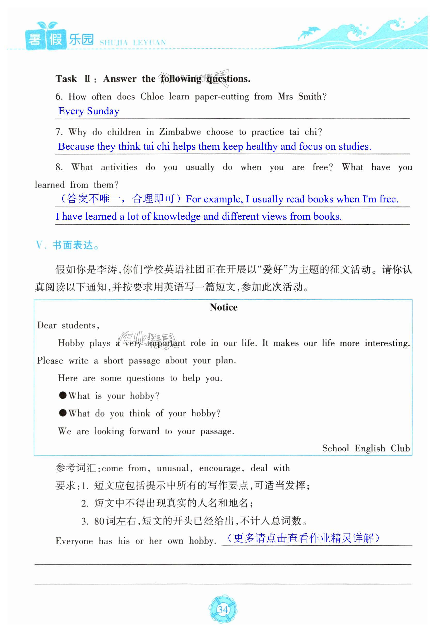 注:目前有些书本章节名称可能整理的还不是很完善,但都是按照顺序排列的,请同学们按照顺序仔细查找。练习册 2025年暑假乐园海南出版社八年级英语外研版 答案主要是用来给同学们做完题方便对答案用的,请勿直接抄袭。