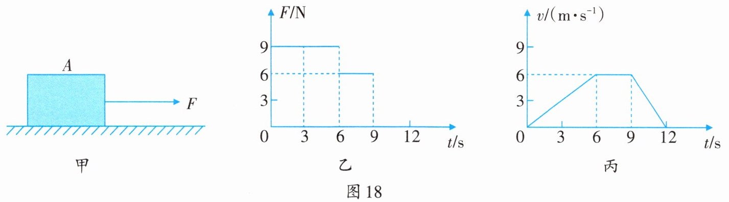 (1) 由图丙可知,6 - 9s 物体做匀速直线运动,此时物体处于平衡状态,水平方向上拉力和摩擦力是一对平衡力。由图乙可知,此阶段拉力$F = 6N$,所以摩擦力$f = F = 6N$。