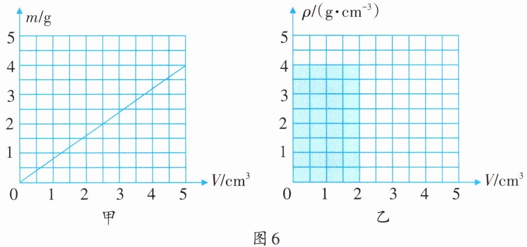 17. 如图6甲是某物质质量跟体积的关系图像,由图可知,该物质的密度为________kg/m³。如图6乙是密度与体积的关系图像,则阴影部分的面积表示的物理量是__________。