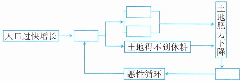 非洲是世界经济发展水平最落后的大洲,粮食问题十分突出,撒哈拉以南的非洲地区是世界饥饿、半饥饿国家数量分布最多的地区。长期以来,这里的农牧业生产落后,农产品产量低,粮食产量的增长速度远低于人口的增长速度,因此,粮食供应严重不足。于是,人们砍伐森林、开垦草原,以扩大耕地面积或放牧更多的牲畜。这些做法导致土地肥力丧失、草原退化,加剧了土地荒漠化,使生态环境逐步恶化。