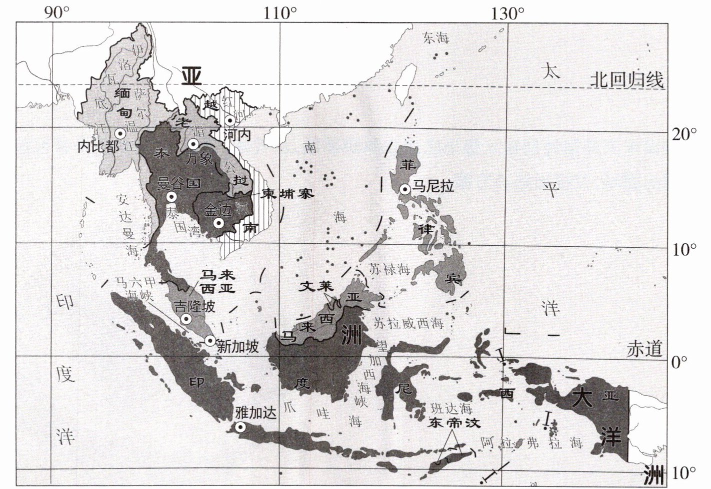1. 气候:热带雨林气候,终年高温多雨,水热充足。地形:多平原,地势平坦。