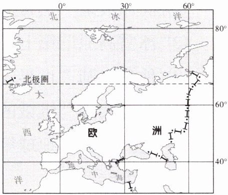 34. 读图,关于欧洲位置的说法,正确的是 ( )
