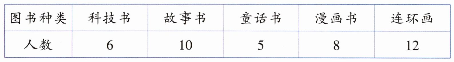 四、下面是二(1)班学生最喜欢看的各种图书的统计情况。(每人只能选一种)