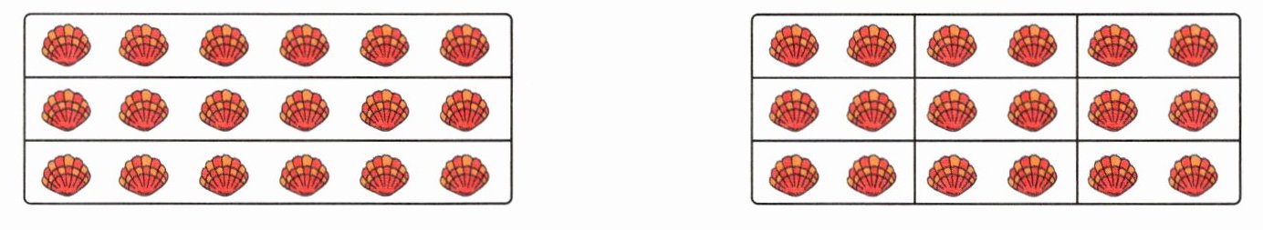 2. 18 个贝壳,每个格子里放相同数量的贝壳,能放几格?