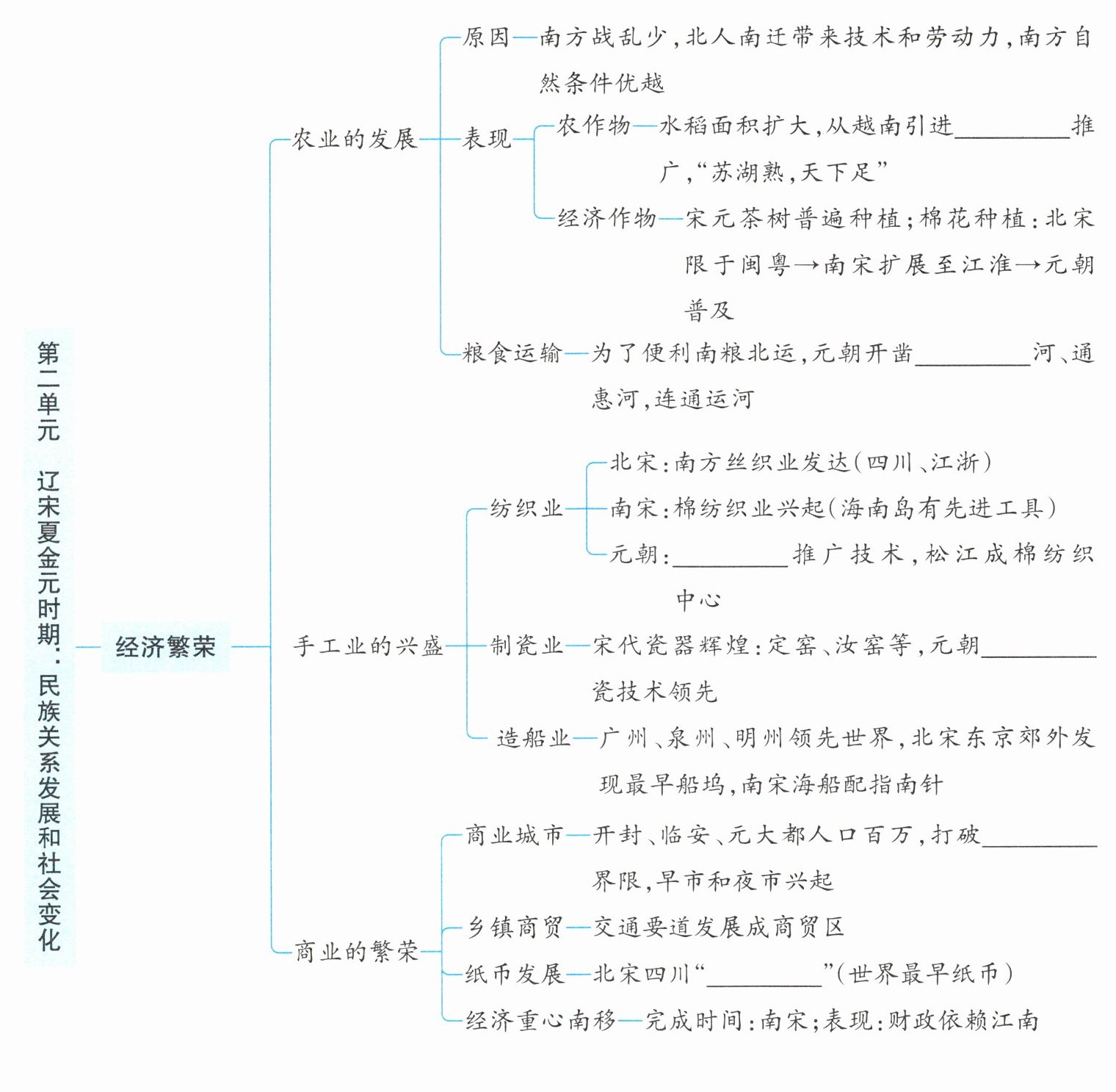 答案: 占城稻;会通;黄道婆;青花;市坊;交子。