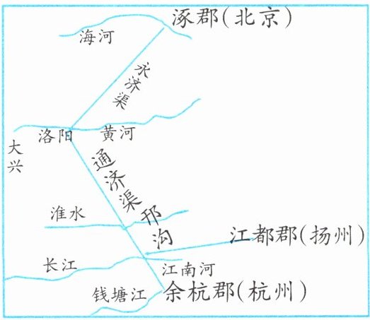 5. 隋炀帝出征辽东,“兴百余万众,馈运(运送粮食)者倍之”。观察右图,若从大运河中心向涿郡(今北京)运粮运兵,需经过大运河的()