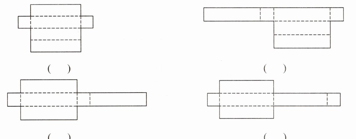 二、下面的图形沿虚线能折叠成长方体包装盒的在下面的括号里打“√”,不能的打“×”。