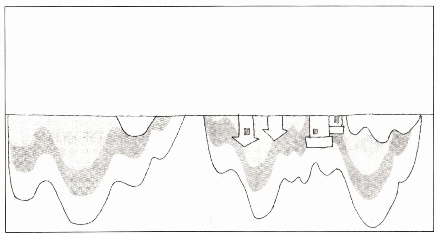 同样的方法,针对倒影中的小屋,从倒影小屋的各个顶点(如屋顶的顶点、墙壁的顶点等)向水面作垂线并延长相同距离,确定地上小屋对应顶点的位置,最后连接这些顶点,画出地上的小屋。