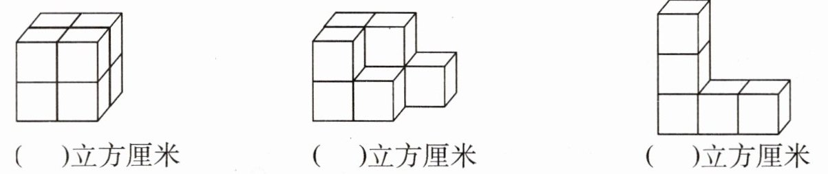 6. 下面的图形都是用棱长为 1 厘米的小正方体拼成的,它们的体积分别是多少?