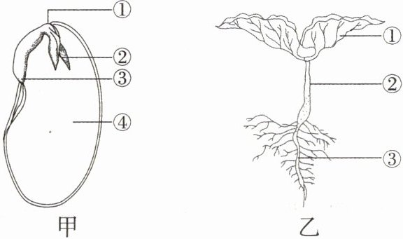 ]________将发育成植物的根。(2)生长:幼苗生长过程中所需的水,主要由图乙中的[