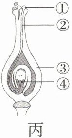 (3)开花:开花后,花粉从花药中散放出来,落在图丙的[①]________