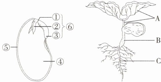 2. 如图所示为菜豆种子的结构及幼苗示意图,请根据图回答问题。