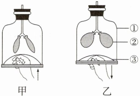 11. 如图为模拟膈肌运动的示意图,①②③代表相关结构。下列有关叙述错误的是(