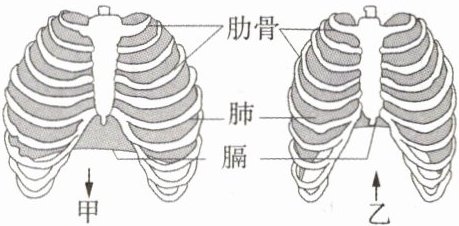 8. 如图是人体膈肌的运动示意图。下列表述与图示相符合的是(