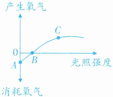 C选项:从图中可以看出,AC段随着光照强度增加,产生氧气的量逐渐增多,说明光合作用强度随光照强度增加而增加,该选项正确。