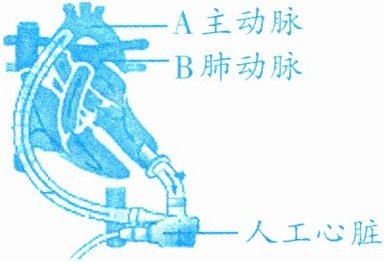 D选项:图中A动脉为主动脉,人工心脏的泵出的血液进入主动脉,D选项正确。