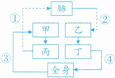 17. 如图是人体血液循环示意图,其中甲~丁代表心脏的四个腔,①~④代表血管。下列叙述正确的是( )
