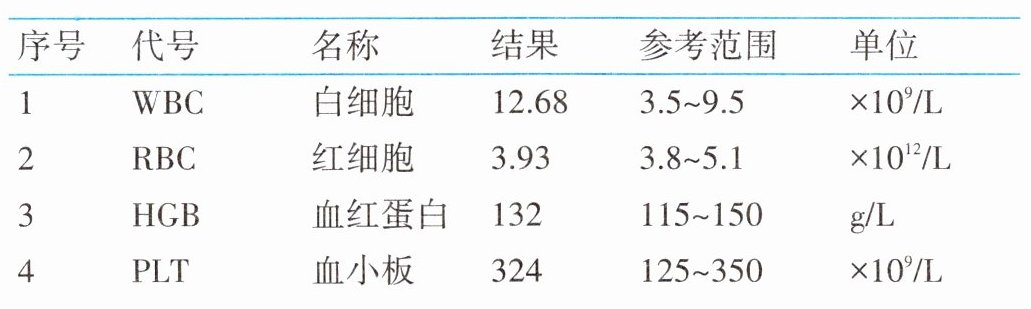 D选项认为该患者血液化验单数据都正常。显然,从数据中我们可以看到白细胞数量是高于正常值的,所以D选项错误。