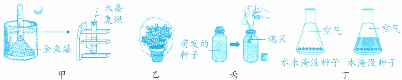 D.丁装置中,两个锥形瓶的变量是水是否淹没种子,即空气是否充足,可验证种子萌发需要充足的空气,而非适量的水分,D错误。