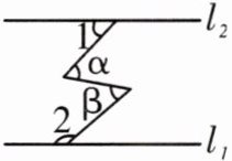 10. 如图,直线$l_{1}// l_{2},∠α=∠β,∠1=40^{\circ }$,则$∠2=$