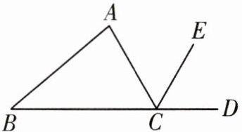 12. 如图,点D在$△ABC$边BC的延长线上,CE平分$∠ACD,∠A=80^{\circ },∠B=40^{\circ }$,则$∠ACE$的大小是