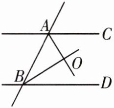8. 如图,直线$AC// BD$,AO、BO分别是$∠BAC$、$∠ABD$的平分线,那么$∠BAO$与$∠ABO$之间的大小关系一定为(