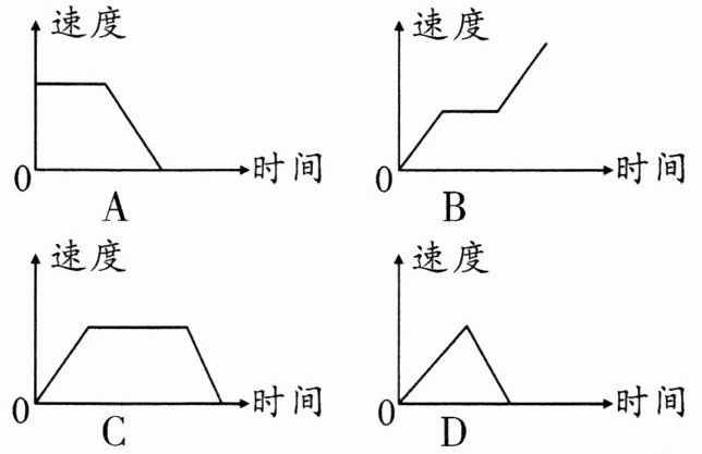 7. 小玲骑自行车去同学家玩,离开家后开始加速行驶,达到一定速度后开始匀速行驶,过了一会遇到一个小市场,开始减速,人太多了于是便停了下来,描述上述过程正确的图象是 (
