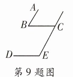 9. 如图,$AB// EC,BC// DE$,则$∠B$与$∠E$的关系是