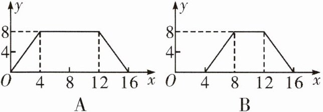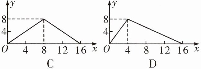 7. 如图,正方形 ABCD 的边长为 4,P 为正方形边上一动点,沿$A→D→C→B→A$的路径匀速移动,设 P 点经过的路径长为 x,三角形 APD 的面积为 y,则下列图象能大致反映变量 y 与变量x 关系的是 (
