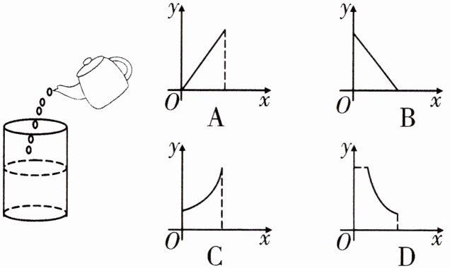 2. 如图,向高为H的圆柱形空水杯中注水,表示注水量y与水深x的关系的图象是下图中的(
