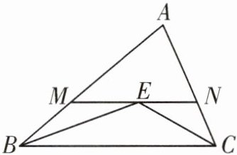 9. 如图,在$\triangle ABC$中,$∠ABC$和$∠ACB$的平分线交于点E,过点E作$MN// BC$交AB于点M,交AC于点N,若$BM+CN=9$,则线段MN的长为(