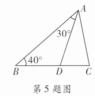 5. 如图,$\triangle ABC$中,AD平分$∠BAC$且与BC相交于点D,$∠B=40^{\circ }$,$∠BAD=30^{\circ }$,则$∠C$的度数是(