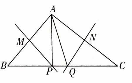 13. 如图,在$△ABC$中,$∠BAC=100^{\circ }$,PM与NQ分别垂直平分AB和AC,求$∠PAQ$的度数.