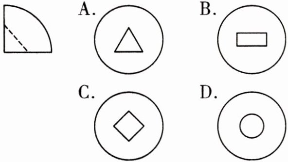 1. 一圆形纸片对折后再对折,得到如图所示的图形,然后沿着虚线剪开,得到两部分,其中一部分展开后的平面图形是(