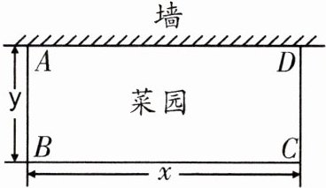 8. 李大爷要围成一个长方形菜园,菜园的一边利用足够长的墙,用篱笆围成的另外三边总长恰好为 $ 24 \mathrm{~m} $,要围成的菜园是如图的长方形 $ ABCD $,设 $ BC $ 边的长为 $ x \mathrm{~m} $,$ AB $ 边的长为 $ y \mathrm{~m} $,则 $ y $ 与 $ x $ 之间的函数关系式是(