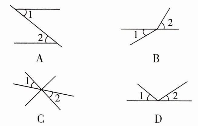 2. 下列选项中,$ \angle 1 $ 与 $ \angle 2 $ 是对顶角的是(