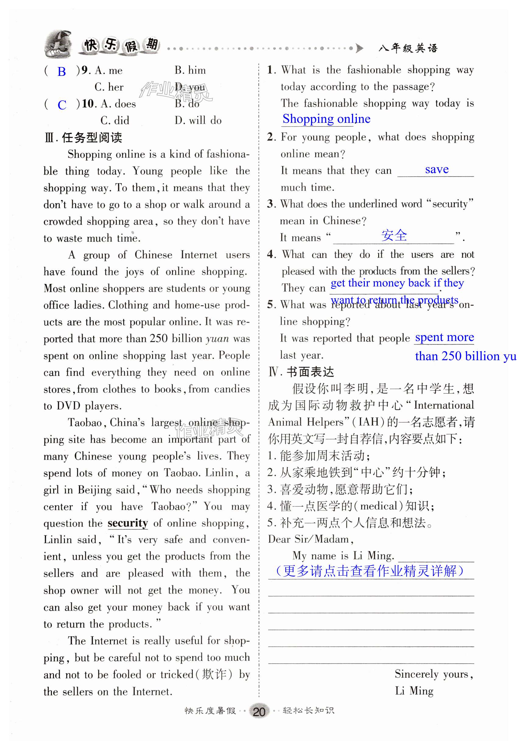 注:目前有些书本章节名称可能整理的还不是很完善,但都是按照顺序排列的,请同学们按照顺序仔细查找。练习册 2025年文涛书业假期作业快乐暑假八年级英语人教版 答案主要是用来给同学们做完题方便对答案用的,请勿直接抄袭。
