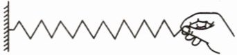 3. 如图所示,一根弹簧一端固定在竖直墙上,在弹性限度内用手水平向右拉伸弹簧另一端,下列有关“弹簧形变产生的力”描述正确的是 (