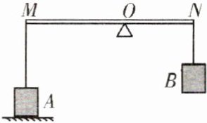 5. 如图所示,两个完全相同的实心物体A、B通过细绳系于可绕O点转动的轻质杠杆MON的两端,其中物体A置于水平地面上,物体B悬于空中,两物体均保持静止,杠杆在水平位置保持平衡,已知两细绳均沿竖直方向,OM:ON=3:2,物体A、B都是高为10cm的长方体,其密度为0.9×10³kg/m³,取g=10N/kg,则物体A对水平地面的压强为(