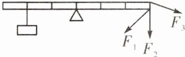 6. 如图所示,均匀杠杆左端挂一重物,要使杠杆平衡,分别作用在杠杆右端的三个力的大小关系为 (