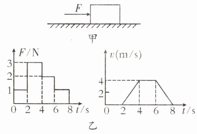 5. 如图甲所示,放在水平地面上的物体,受到方向不变的水平推力F的作用,F的大小与时间t的关系和物体运动速度v与时间t的关系如图乙所示.下列判断正确的是