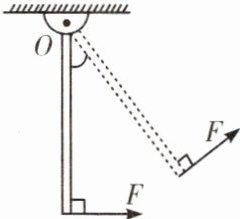 4. 如图所示,重力为 $ G $ 的均匀木棒竖直悬于 $ O $ 点,在其下端施一始终垂直于棒的拉力 $ F $,让棒缓慢转到图中虚线所示位置。在转动的过程中 (