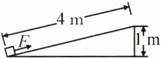 4. 如图所示,斜面高为 1 m,长为 4 m,用沿斜面向上大小为 75 N 的拉力 F,将重为 200 N 的木箱由斜面底端匀速缓慢拉到顶端,下列关于做功的判断正确的是 (